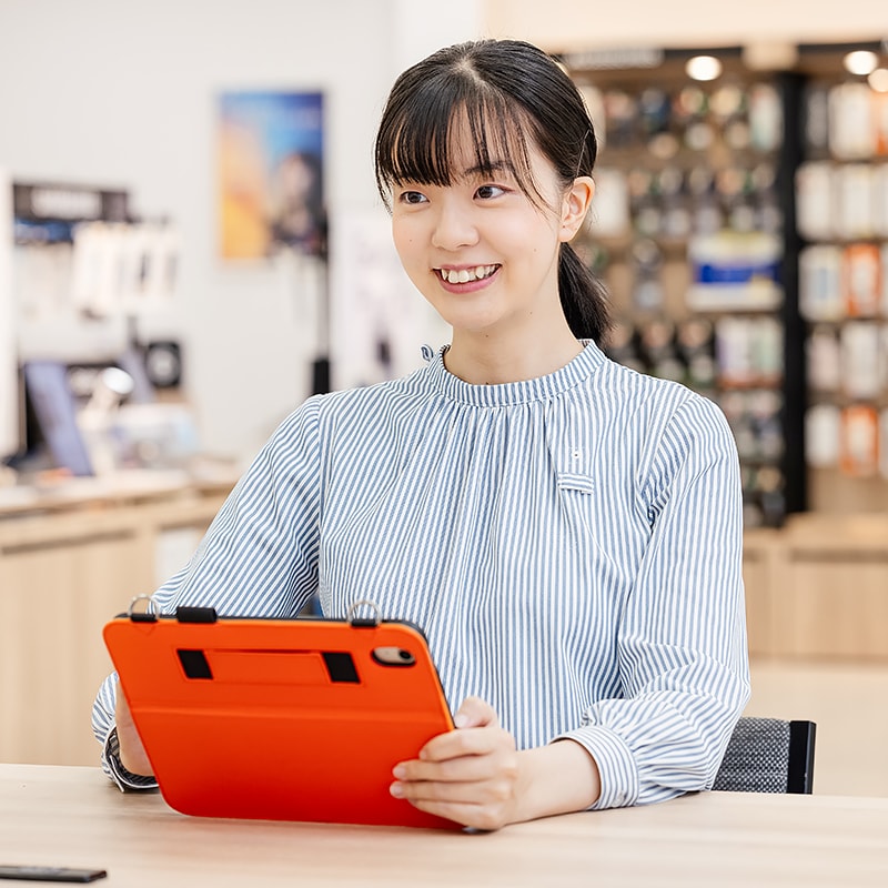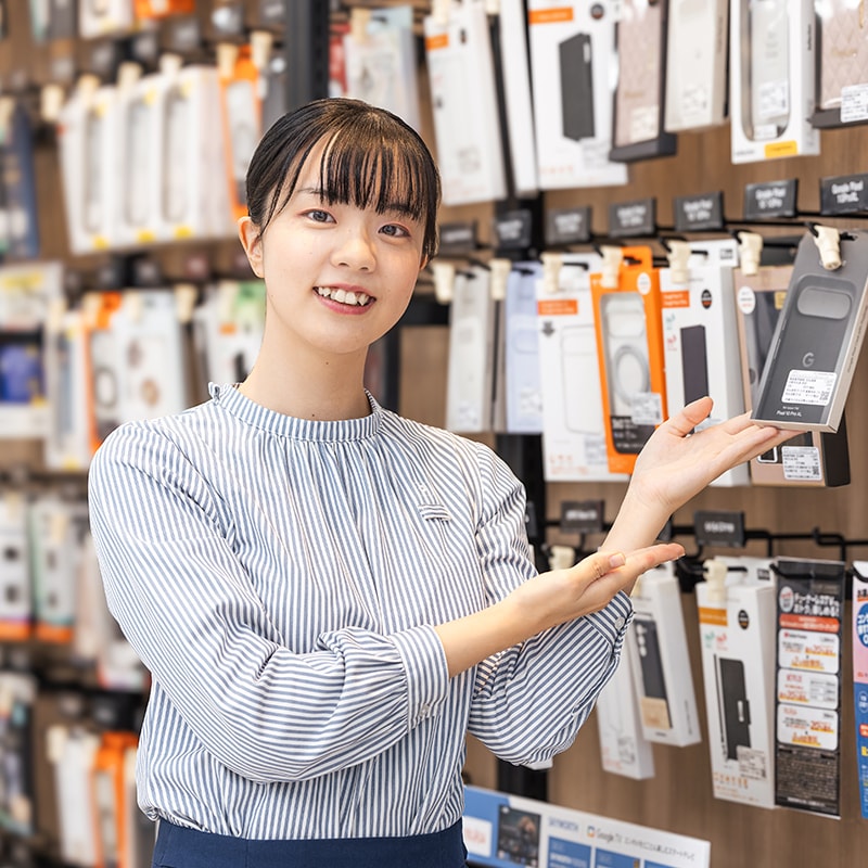 一般企業を見る中で、人と話すことが好きだったので、コンサルティング営業という職種に興味を持ちました。その中でも携帯ショップのお仕事は、日常生活の色々なお話を聞いた上で、お客様一人ひとりに適したご紹介をしていくため、会話の幅が一番広いお仕事だと考え魅力に感じました。またご来店されるお客様の年代も様々なので面白そうと感じ、直にお客様の喜びを感じられる点も良かったポイントです。会社説明会を聞いた段階で、自分がやってみたいと思うことに近いと感じました。